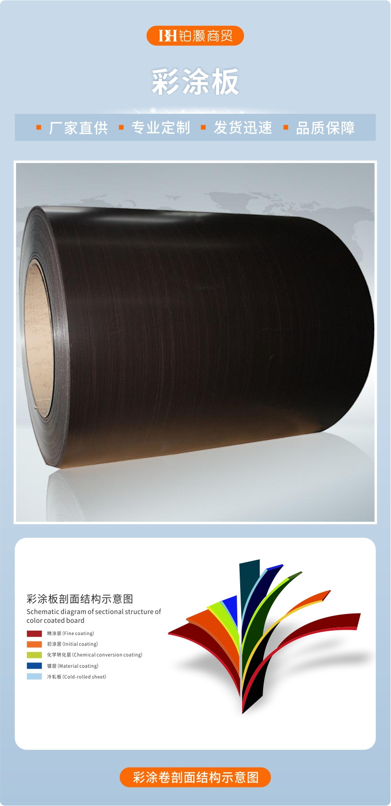 | 公司简介 | 佛山市铂灏商贸有限公司名成立于2024年,是一家在钢铁行业中具有卓越声誉和广泛影响力的钢贸公司。公司总部位于华南商业之都—顺德乐从,业务范围涵盖国内外多个地区。我们致力于为客户提供高品质、多样化的钢铁产品和一站式的优质服务。公司拥有一支经验丰富、专业素养高的团队,他们精通钢铁市场动态,能够精准把握客户需求,并为客户提供最具性价比的解决方案。在产品方面,我们与众多知名钢铁生产企业建立了长期稳定的合作 ... | ||